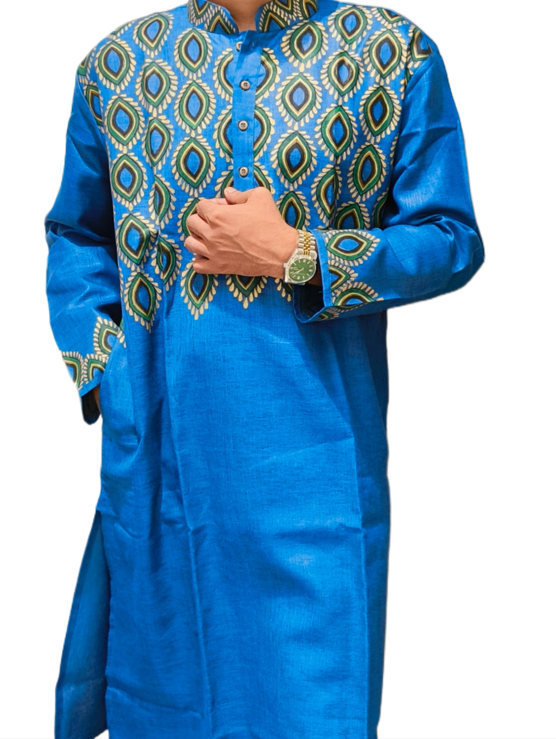 Elevate your ethnic wardrobe with this exquisite Hand-Painted Cotton Blend Kurta for men. Crafted with a unique blend of cotton, this kurta offers the perfect balance of comfort, durability, and style. Featuring intricate hand-painted designs, each piece is a work of art, making it a one-of-a-kind addition to your collection. The two functional side pockets enhance practicality while maintaining a sharp, refined look, making this kurta ideal for both casual and festive occasions. Whether you're attending a wedding, a festival, or just adding some flair to your everyday style, this kurta will surely make a lasting impression.